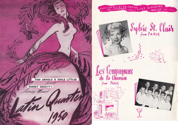 Vers 1949-1951 elle est souvent à Londres, régulièrement invitée par la BBC Television pour l'émission Café Continental dont un rare programme d'une représentation au Dolphin Theatre de Brighton, nous est parvenu. Il nous donne le détail du spectacle sous forme de Menu en trois parties : Apéritif, Entrée et Spécialité de la maison, accompagné par l'orchestre de Sidney Bowman. Septembre 1951, l'agence, Sidney-Ascher Associates, achète une double page dans la revue professionnelle Variety : un CV distribué à des milliers d'exemplaires dans tous les Etats-Unis ! Les effets sur sa carrière ne tardent pas. Les contrats se succèdent à Chicago, Dallas, New-York, Los Angeles, San Francisco, etc. En 1952 elle est à Los Angeles, à Hollywood précisément, où elle vit une relation, qualifiée de "romance torride" par la presse, avec l'écrivain français Pierre La Mure, auteur du roman Moulin Rouge dont s'inspire le film qui obtient 2 oscars en 1953.